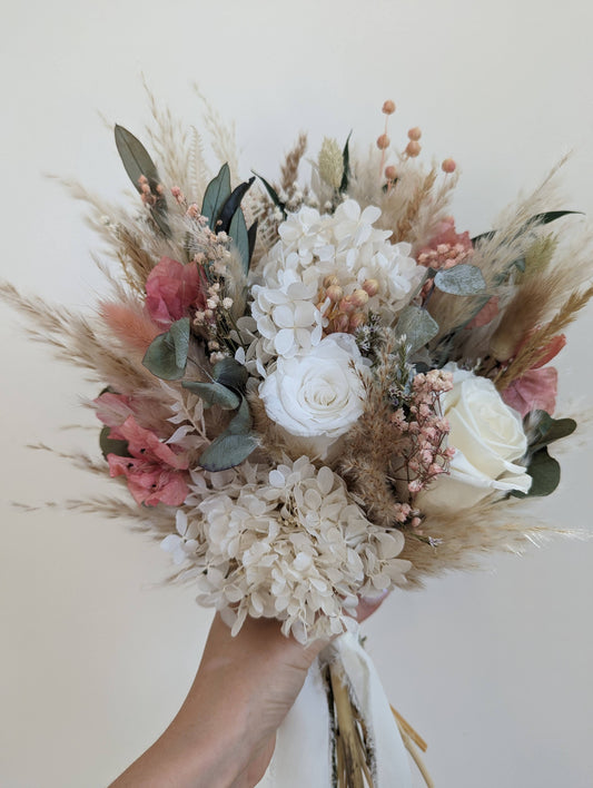 Boho Blush Bridal Bouquet - Preserved Hydrangeas and Roses