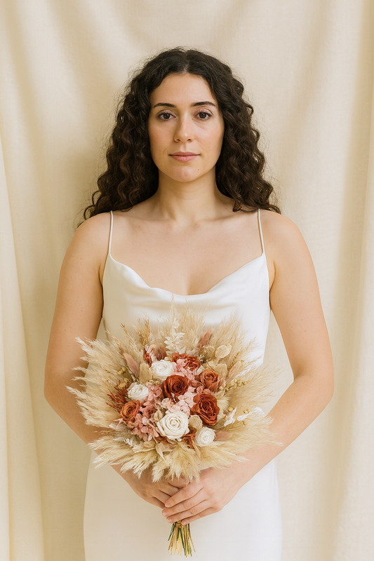 Autumn Wanderlust Bridal Bouquet - Terracotta, pampas and preserved roses