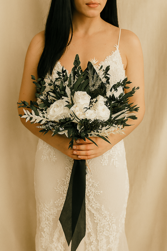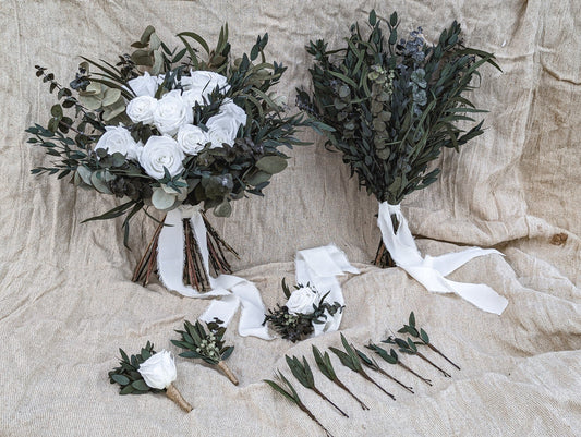 Classic White Bridal Bouquet - Eucalyptus and White Preserved Roses