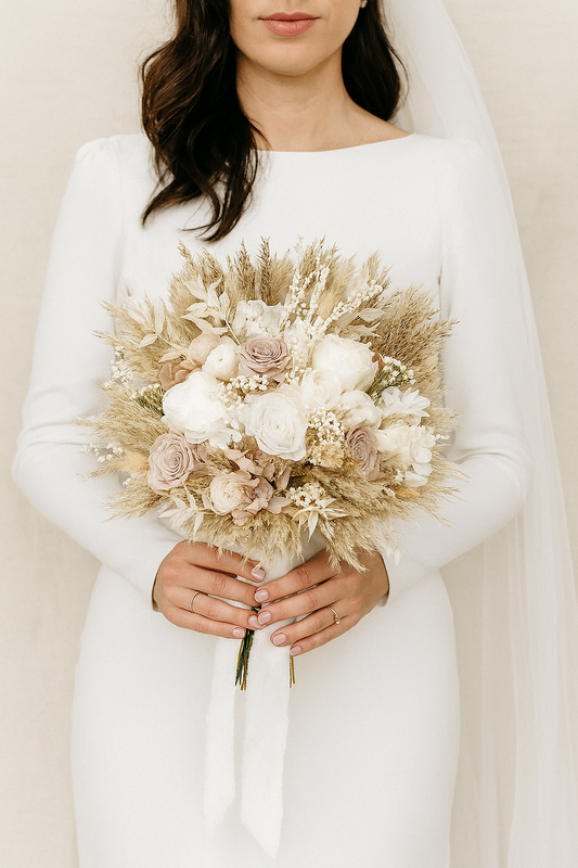 Kyra Bridal Bouquet - Preserved roses and pampas grass