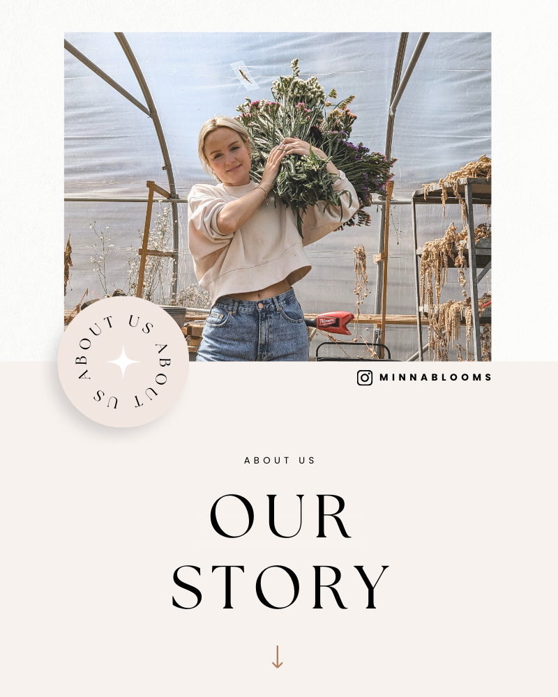 Minna Blooms began during lockdown in South Lincolnshire, but the story starts much earlier. Chloe’s love of dried flowers runs in the family. Her grandmother, Jane, ran a successful dried flower business called Flower Creations back in the 1970s and 80s. Growing up, Chloe saw the magic of it all. The calm of the garden, the beauty in the details, and the joy of creating something that lasts.