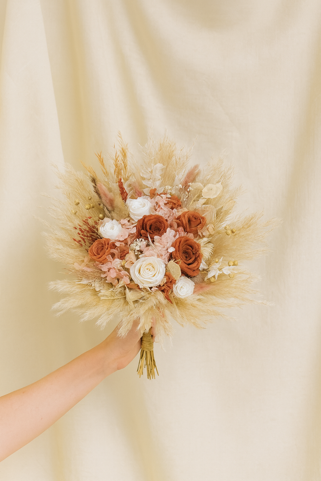 Autumn Dreamer Bridal Bouquet - Blush with Pampas Grass and Preserved Roses