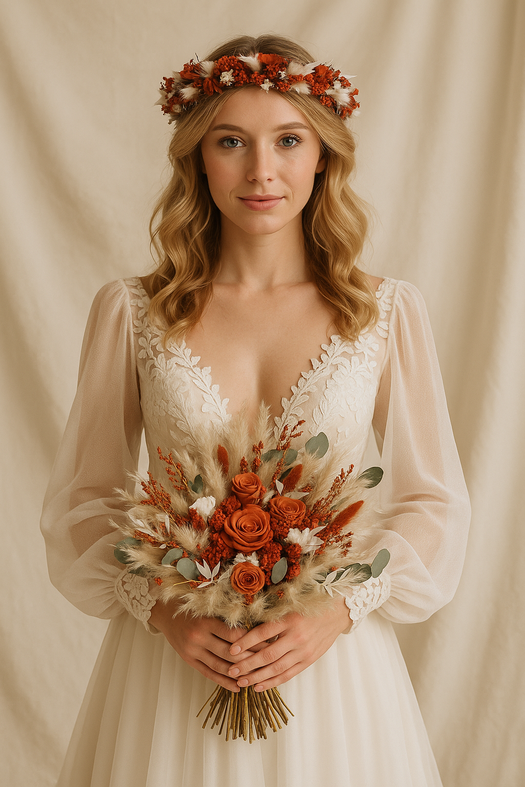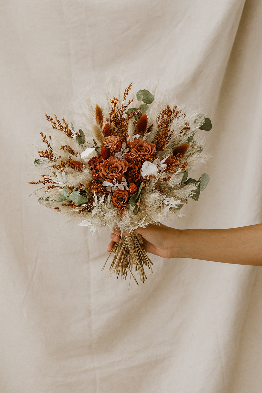 Autumn Wanderlust Bridal Bouquet - Terracotta, pampas and preserved roses