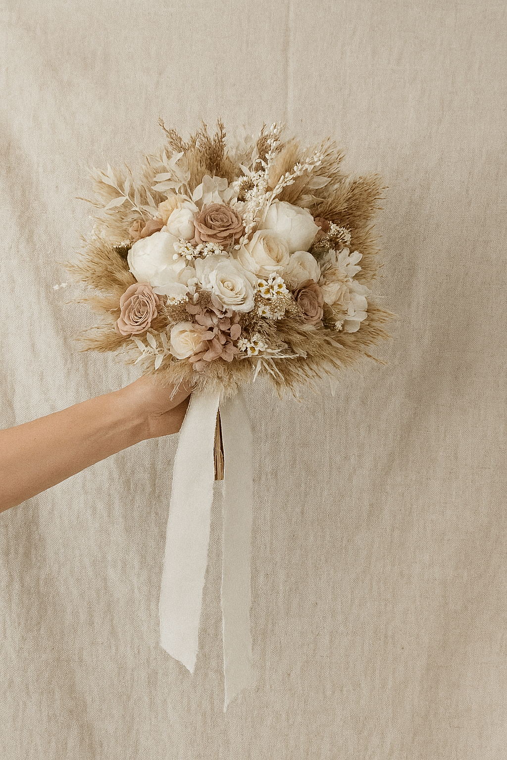 Kyra Bridal Bouquet - Preserved roses and pampas grass