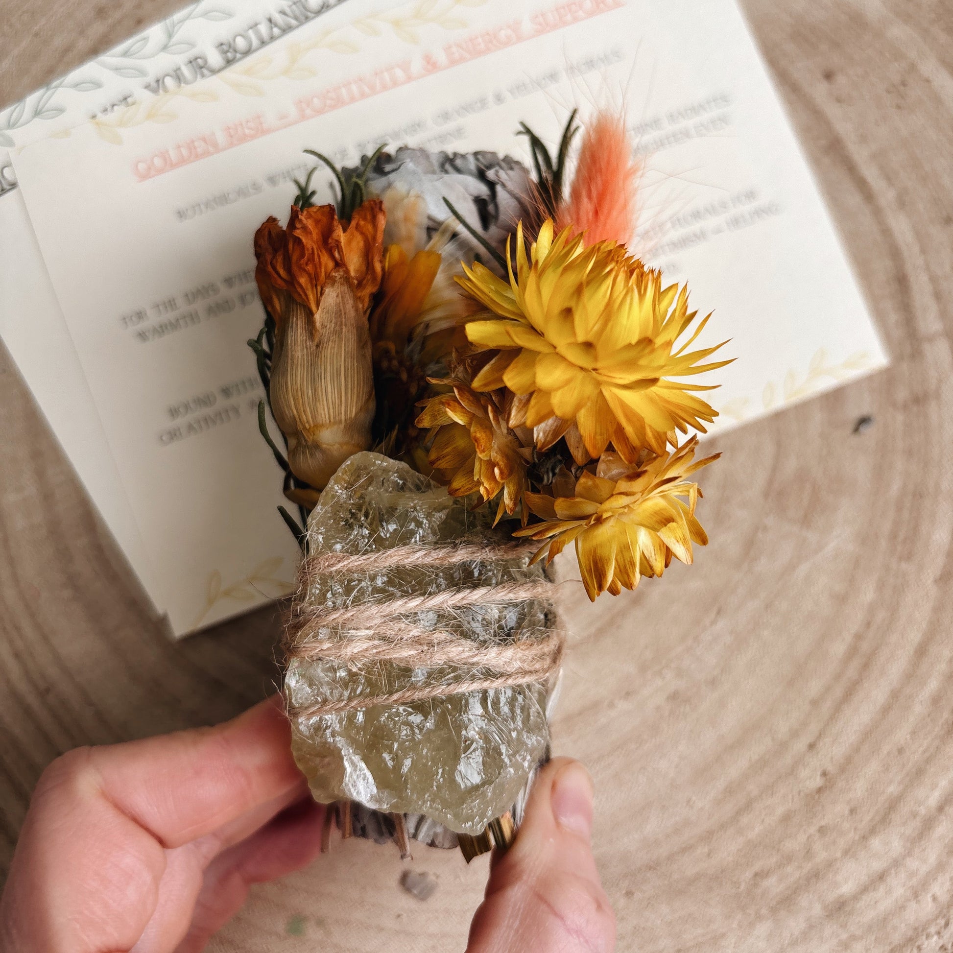 Each order includes ritual instructions, care guidance, and a note sharing the meaning behind your smudge stick’s botanicals and crystal - complete with a gentle affirmation to ground your ritual in intention.