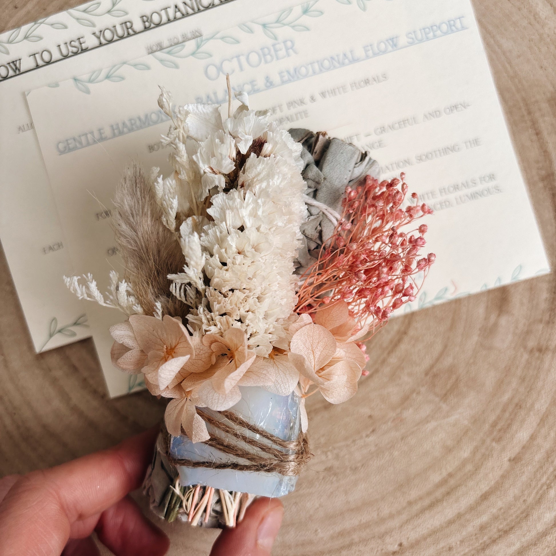 Each order includes ritual instructions, care guidance, and a note sharing the meaning behind your smudge stick’s botanicals and crystal - complete with a gentle affirmation to ground your ritual in intention.