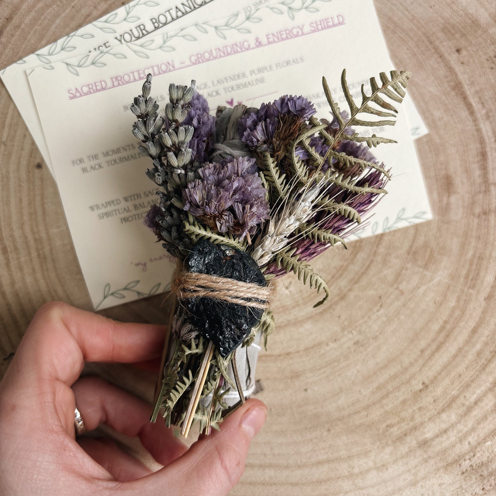 Each order includes ritual instructions, care guidance, and a note sharing the meaning behind your smudge stick’s botanicals and crystal - complete with a gentle affirmation to ground your ritual in intention.